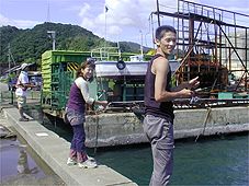 | ●一般参加のしゅう&せいこっち。椿泊じゃあ二人ともキッチリ釣ってましたねえ。本格的なメッキ釣りは初めてって聞いたけどやるじゃん! |