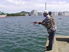| ●どこのエサ師かと思ったらムッチーニですか。しかし、変なキャスティング〜!綱引きしてるみたいです。 |